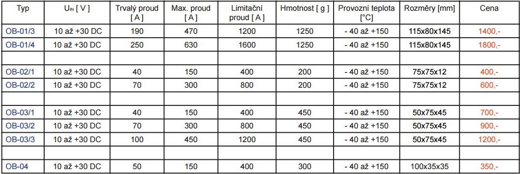 - ochrana proti přetížení a proti zkratu na straně zátěže